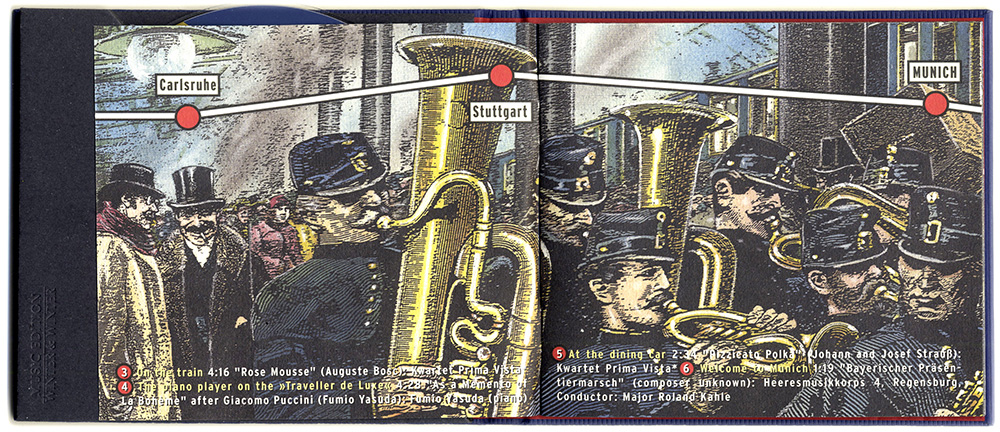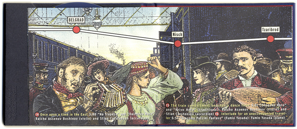 16–seitiges illustriertes Booklet, 2002. Dieses musikalische Tagebuch erzählt von einer fiktiven Reise im luxuriösen Orient Express von Paris nach Konstantinopel im Juni 1905. Die Reisegesellschaft versammelt sich in Paris Est und bereitet sich auf ihre Abfahrt vor. Puccini, Strauß, Bizet, Schubert und Brahms sind die Reisebegleiter. Es geht quer durch Europa, bis ans südöstliche Ende, nach Konstantinopel...