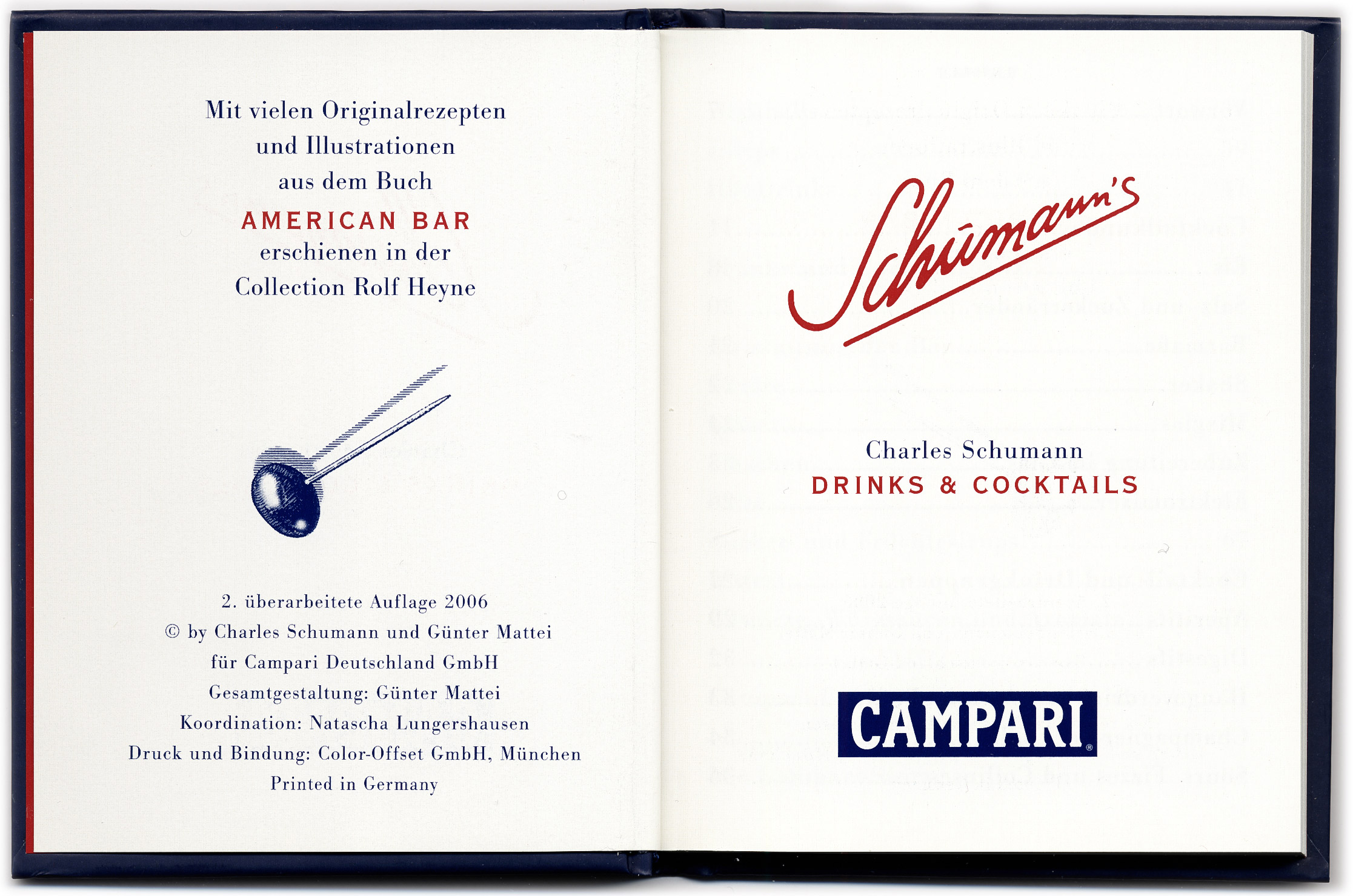 Schumann's for Campari - Drinks & Cocktails, hardcover, 1st edition 2005.