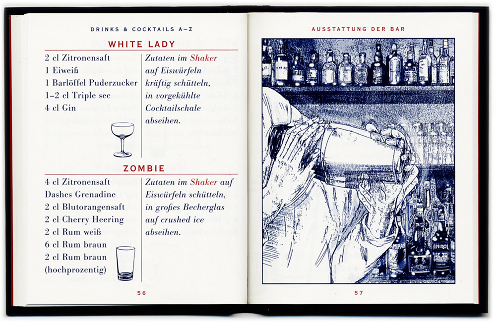 A “mini barbook“ in the format 8.5 x 11.5 cm, nearly 100 pages strong. Apparently one of Campari's most successful marketing campaigns, which was therefore made twice in a row. The first time with red cover, the second time in blue.
