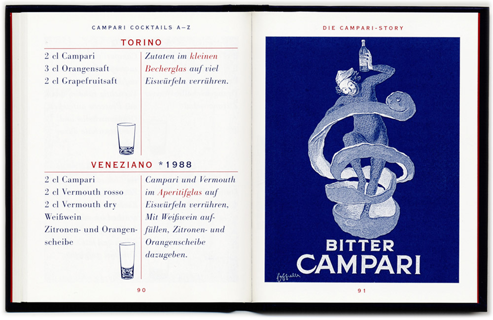 Ein „Mini-Barbuch“ im Format 8,5 x 11,5 cm, knapp 100 Seiten stark. Anscheinend eine der erfolgreichsten Marketing-Kampagnen von Campari, die deshalb auch zweimal hintereinander gemacht wurde. Das erste Mal mit rotem Einband, das zweite Mal in Blau.