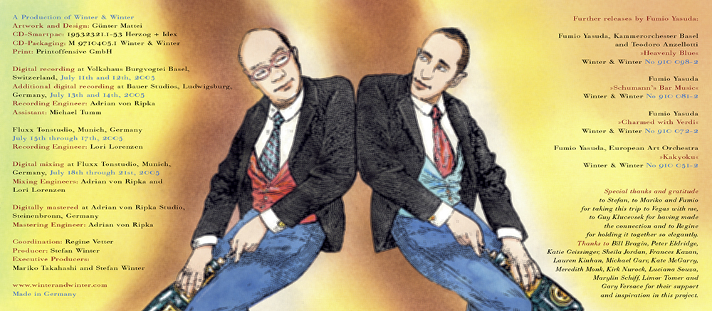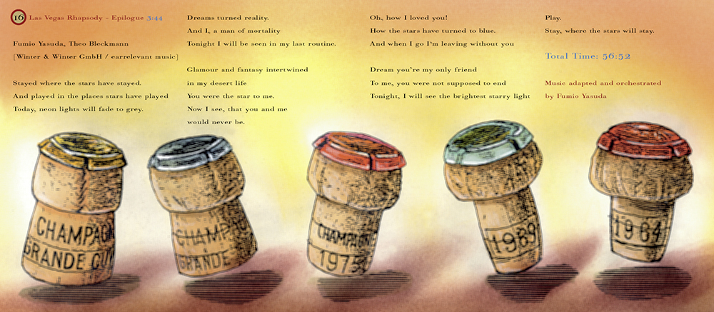 On the occasion of the 100th anniversary of Las Vegas, Japanese composer Fumio Yasuda has adapted and orchestrated great show tunes for German-born New York singer Theo Bleckmann to create the musical illusion of a Las Vegas star. The Basel Chamber Orchestra "plays" the role of a gigantic salon orchestra in the "Sin City" of Nevada.