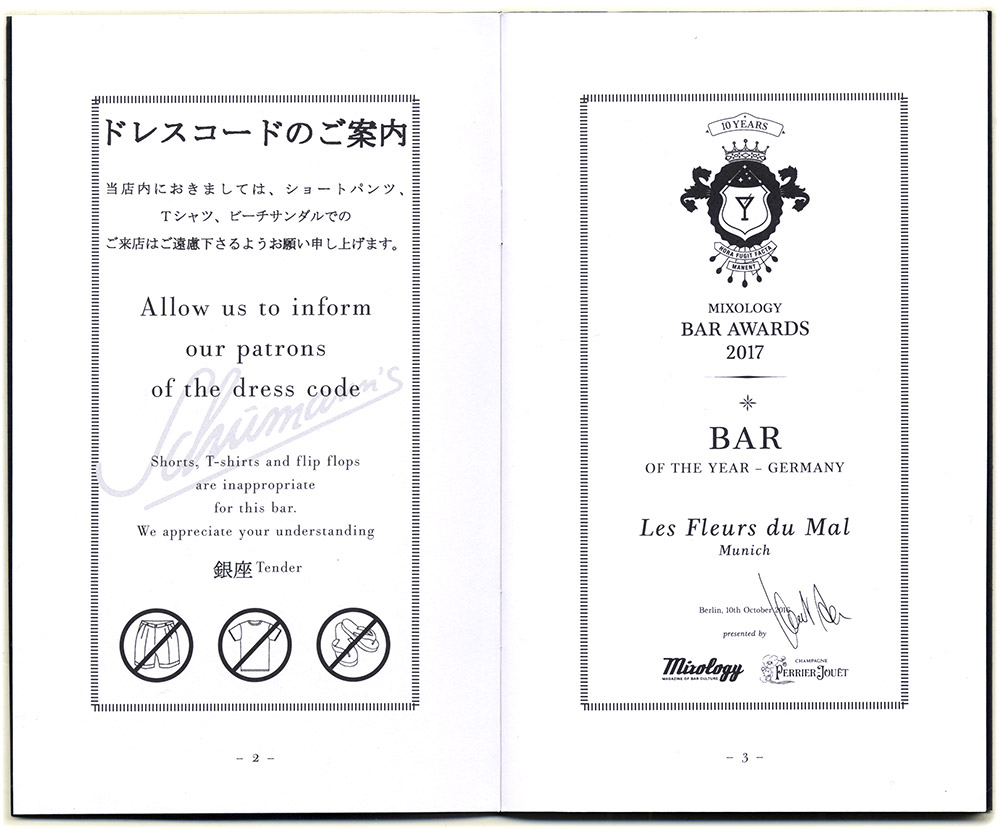 In 2013, Charles opened this small bar on the 1st floor. "A cocktail bar as I have always wished" according to his statement. You take a seat at a nine-meter-long table and discuss your drink with the barman. The bar menu changes monthly and there are bartenders from all over the world who work here for one or even two evenings as a "guest bartender". A small turtle evolved to the logo